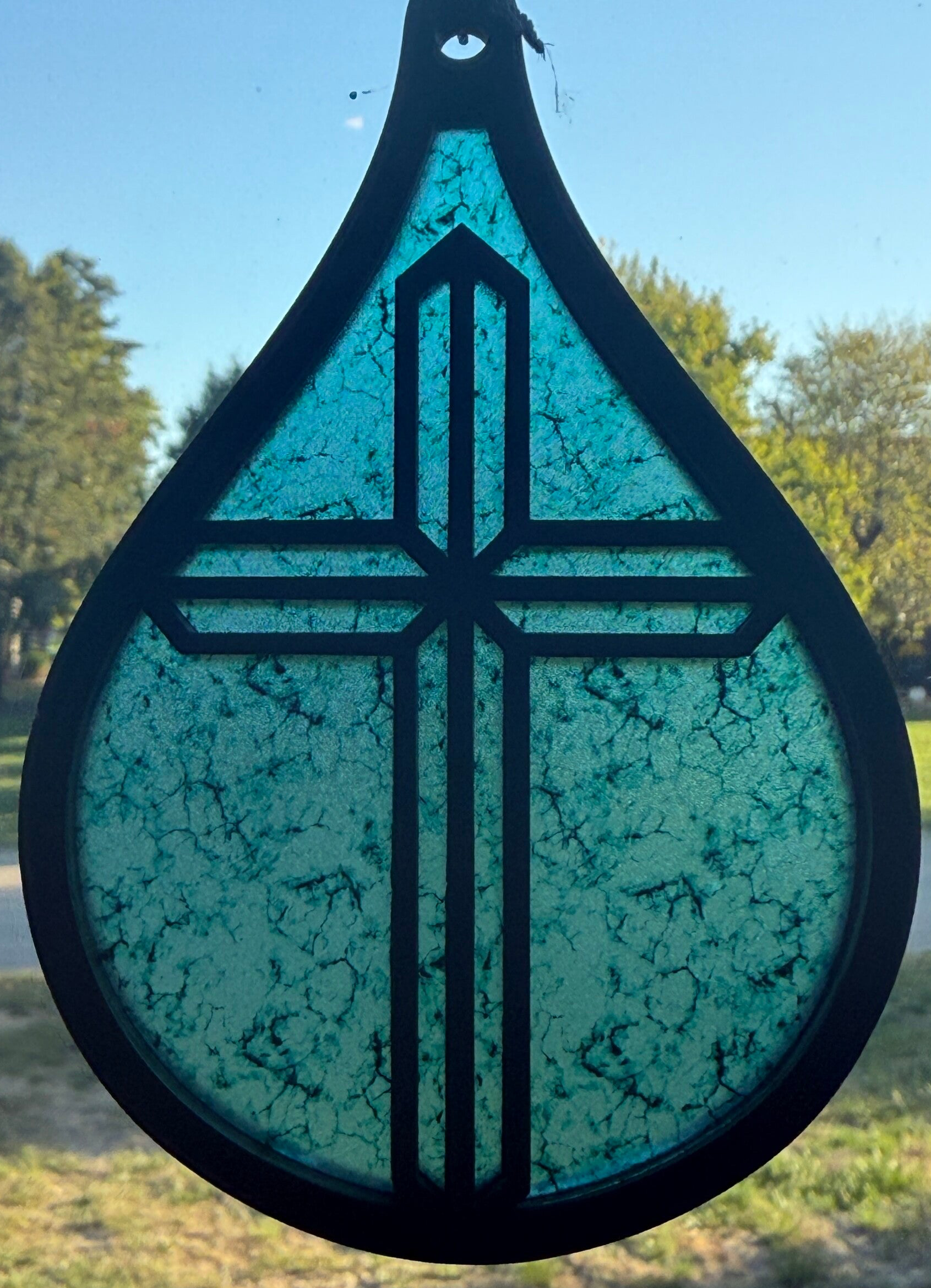 Cross tear drop sun catcher