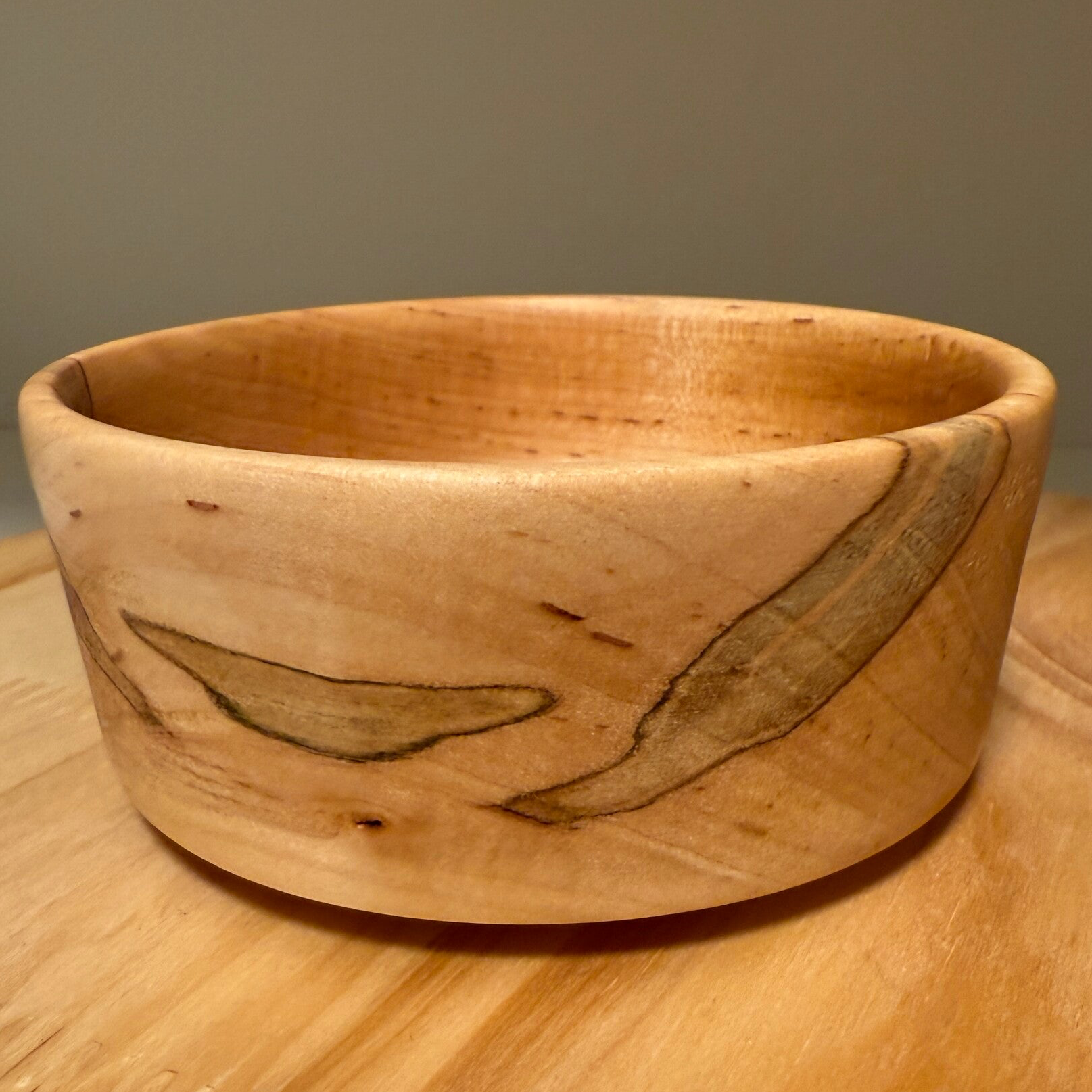 Made out of Ambrosia Maple this bowl is 2" in height and 4.375" in width. Has a high end finish on it that is food safe. Ideal use for hard candy, coin bowl, or just use as decor.