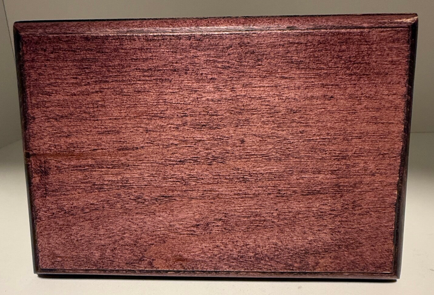 Made out of Maple wood. This keepsake box features box joints and a classic base and top custom fit bottom and lid. Dimensions are 3" high, 6.5" wide, and a width of 4". The pictures are of the item you will receive.